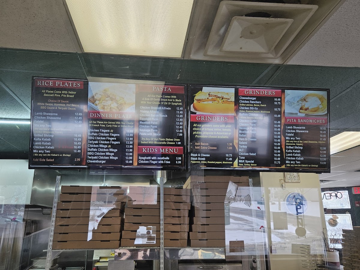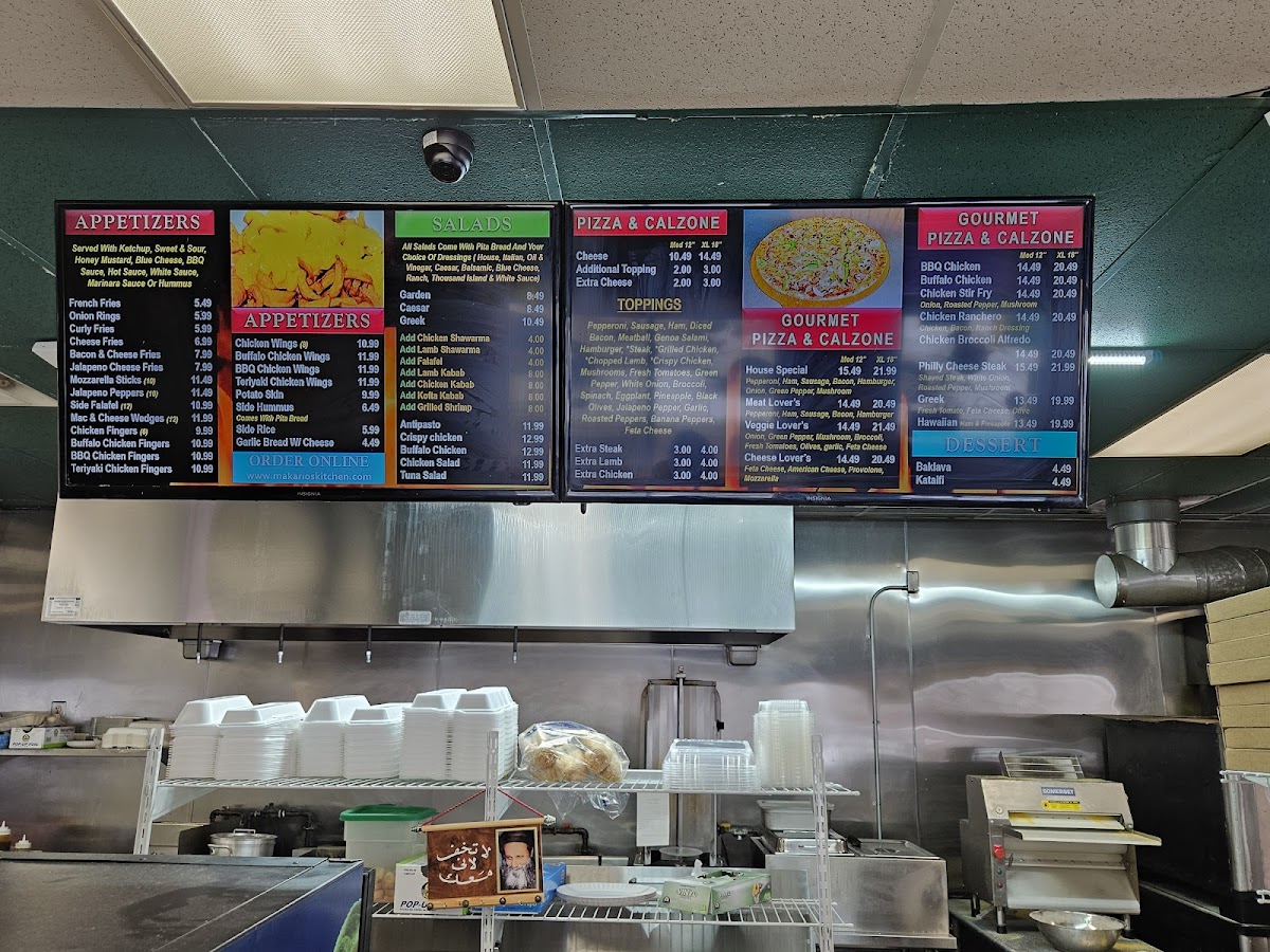 Garlic, Onions, Tomato, Green peppers, Banana peppers, Jalapeno, Grilled chicken, Chopped Lamb, Feta cheese, Extra cheese.